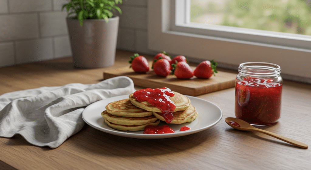Dżemy wysokosłodzone (np. truskawkowy, wiśniowy) – to najczęściej spotykane produkty na sklepowych półkach. Zawierają sporo dodanego cukru, a ich kaloryczność waha się w granicach 230–260 kcal na 100 g. Jedna łyżka takiego dżemu to dodatkowe 45–55 kcal do naleśnika.